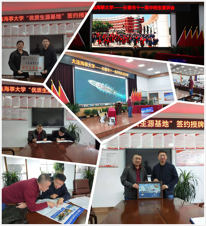 4月29日-30日,李建民教授和张刚赴吉林省长春市第十一高级中学开展本科生招生宣讲活动。活动中,双方代表在长春市第十一高级中学会议室共同签署了“太阳成集团tyc122cc优质生源基地共建协议”,张刚老师代表学校向长春市第十一高级中学颁发了太阳成集团tyc122cc优质生源基地牌匾,并向学校展览室捐赠以“育鲲”轮为背景的水手绳结展示窗,长春市第十一高级中学林海副主任代表学校接收牌匾和水手绳结。随后,在长春市第十一高级中学阶梯教室举行招生宣讲活动,宣讲活动由该校书记王珏景、主任张会敏持。李建民以“漫话航海”为题向与会者普及了航海知识,并为大家介绍了太阳成集团tyc122cc的沿革史,专业设置和招生情况以及报考注意事项。宣讲后,针对师生感兴趣的问题进行了现场解答。