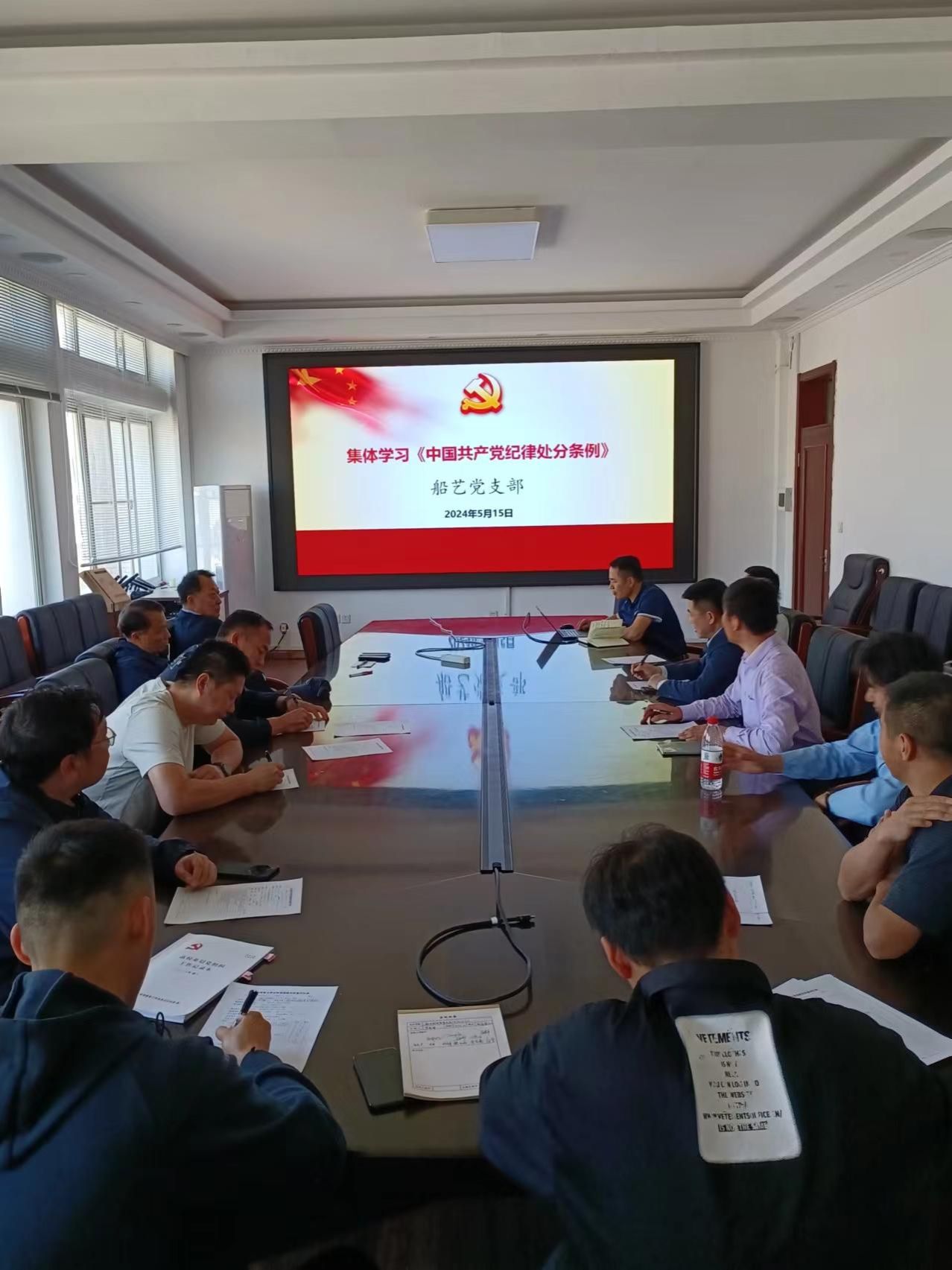 2024年5月15日,太阳成集团tyc122ccvip船艺党支部在航海楼321会议室组织开展集体学习《中国共产党纪律处分条例》主题党日活动。活动由党支部书记李伟峰主持,党支部党员同志参加。