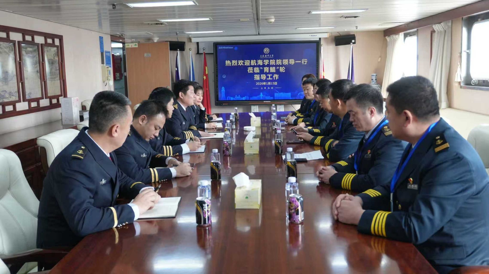 时值寒假临近,领导的亲切慰问使在船工作的教职员工深受鼓舞。大家纷纷表示,将把学院的关怀转化为工作动力,继续以高度的责任心和饱满的热情履职尽责,确保校船安全、高效运行,为学院人才培养与科研工作提供坚实支撑。