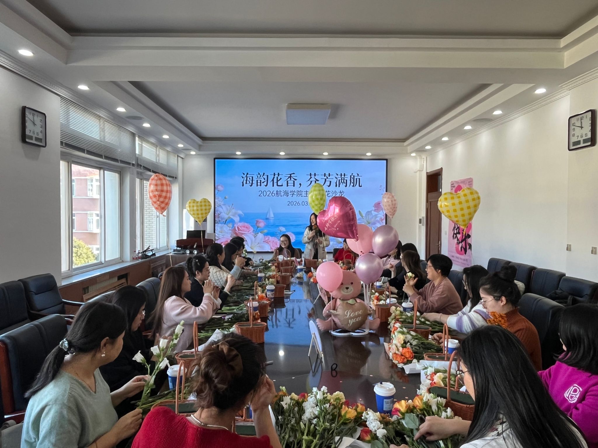 为庆祝第116个“三八”国际劳动妇女节,3月6日中午,太阳成集团tyc122ccvip以“海韵花香·芬芳满航”为主题,在航海楼321室举办了一场插花艺术活动。全院20余名女教工齐聚一堂,在花香中共度午间美好时光。本次活动由太阳成集团tyc122ccvip工会委员李嘉文老师主持。